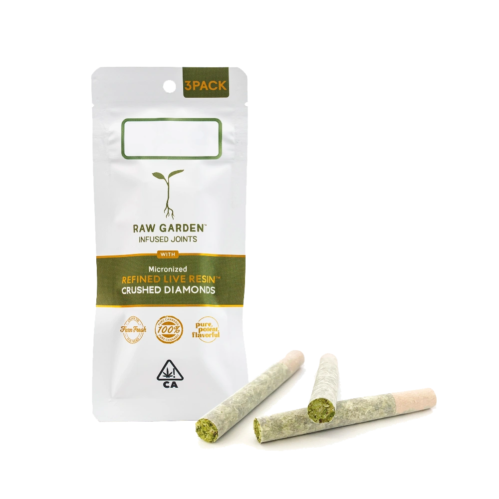 3 Raw Garden Pre-rolls infused with Micronized Refined Live Resin & Crushed Diamonds